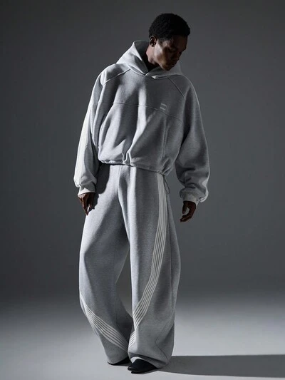 Men's Gray Drawstring Wide Leg Sweatpants With White Side Stripes, Casual Daily Athletic Lounge Pants-78%