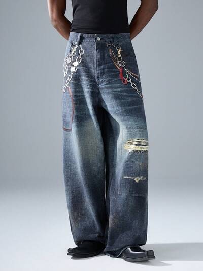 Men's Street Fashion Loose Woven Denim Effect Long Pants-33%