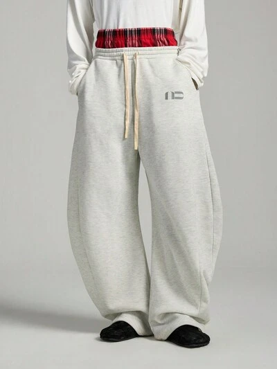 Men's Street Style Loose Grey Knit Sweatpants, School, Streetwear Casual-25%