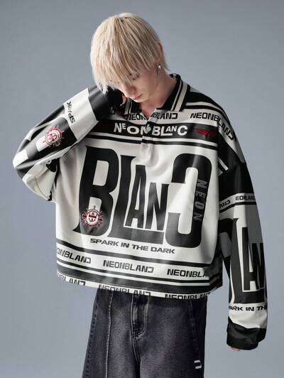 Men's Fashion Streetwear Long Sleeve Printed Polo T-Shirt, Fall-45%