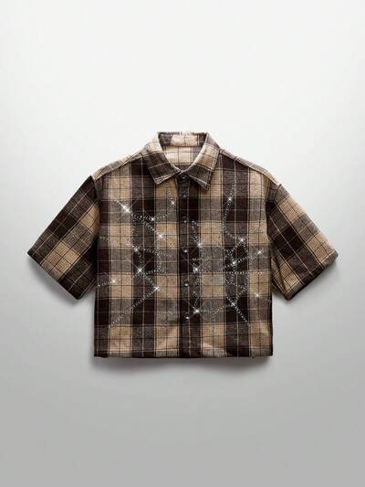 Men's Street Style Crystal Spider Web Plaid Short Sleeve Woven Shirt-36%