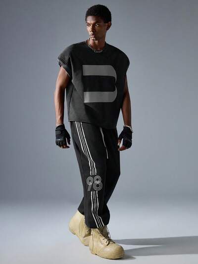 Men's Street Fashion Knit Tank Top With Letters & Numbers, Sleeveless Crewneck Knitted Sweater Vest, Streetwear Inspired