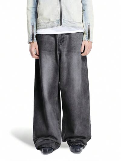Men's Pocket Design Wide Leg Loose Fit Street-Style Jeans-34%