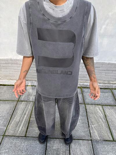 Men's Street Fashion Knitted 2 In 1 Black & Grey Printed Round Neck T-Shirt-65%