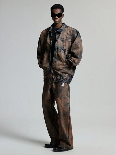 100% Cotton Men Street Style Washed Loose Denim Jacket-61%