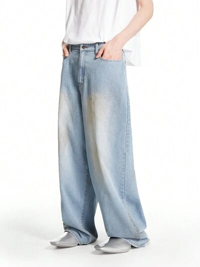 Men's Light Blue Washed Faded Baggy Jeans-60%