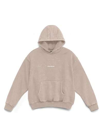 Men's Knit Speckled Washed Ink Print Loose Cropped Hoodie Sweatshirt, Suitable For Fall, Winter-60%