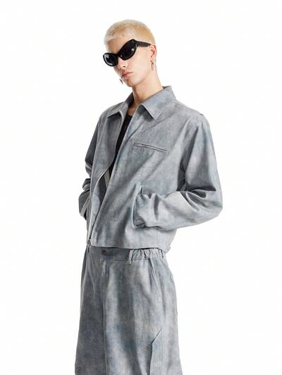Men's Woven Melton Fabric Distressed Relaxed CLEAN FIT Zip-Up Jacket Outerwear, For Fall Winter-23%