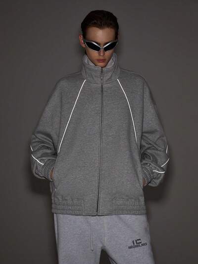 1pc Men's Grey Raglan Sleeve High Neck Zip-Up Jacket, For Fall Winter-60%