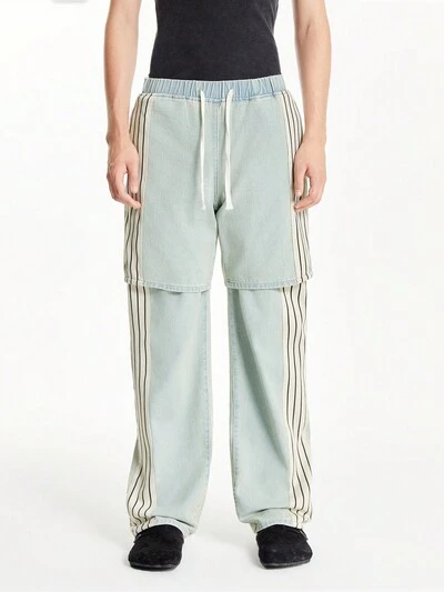 Men's Loose Fit Light Blue Washed Denim Striped Shorts