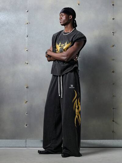 Men's Fashion Casual Loose Wide-Leg Capri Pants, School, Streetwear Style-64%