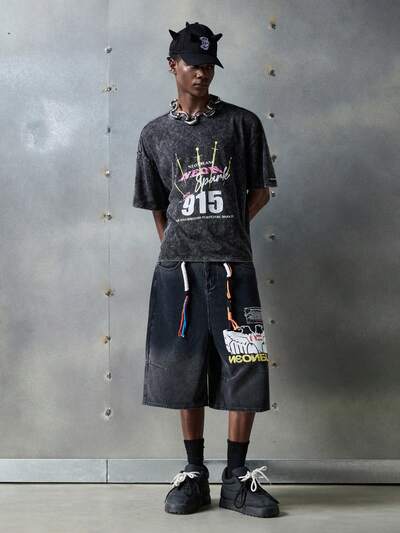 Men's Street Fashion Woven Denim Short Sleeve Oversized Shirt, Streetwear Edition-66%
