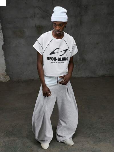 Men's Gray Drawstring Wide Leg Sweatpants With White Side Stripes, Casual Daily Athletic Lounge Pants-34%